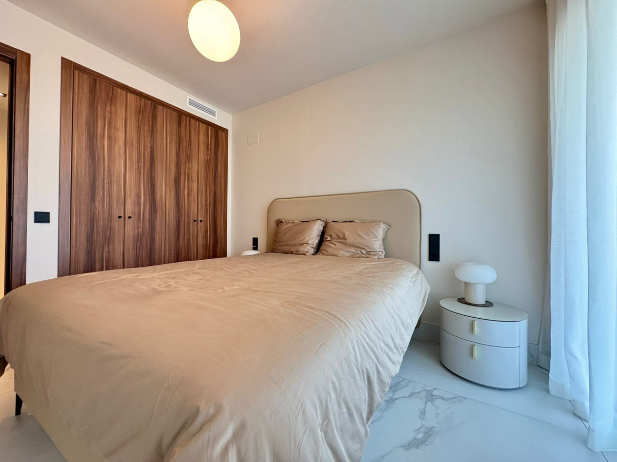 Located in the exclusive TERRA residential development, just a short walk from the beach and the vibrant center of San Pedro de Alcántara, this brand-new apartment offers the perfect combination of modern design, prime location, and top-quality finishes. The property features 3 spacious bedrooms and 2 bathrooms, an open-plan living and dining area, and a fully fitted kitchen equipped with premium Siemens appliances and elegant Silestone countertops. Large windows flood the interiors with natural light, while an enclosed terrace extends the living space for year-round enjoyment. Highlights of TERRA include: Kitchens and bathrooms designed with leading brands such as Silestone, Siemens, Jacob Delafon, and Tres Large-format Saloni porcelain flooring throughout Motorized shutters, fitted wardrobes, and armored entrance door Advanced air-conditioning, aerothermal water heating, and photovoltaic solar panels for maximum energy efficiency (Energy Rating A) Landscaped gardens, a large swimming pool and children’s pool, underground parking with EV charging pre-installation, and private storage rooms