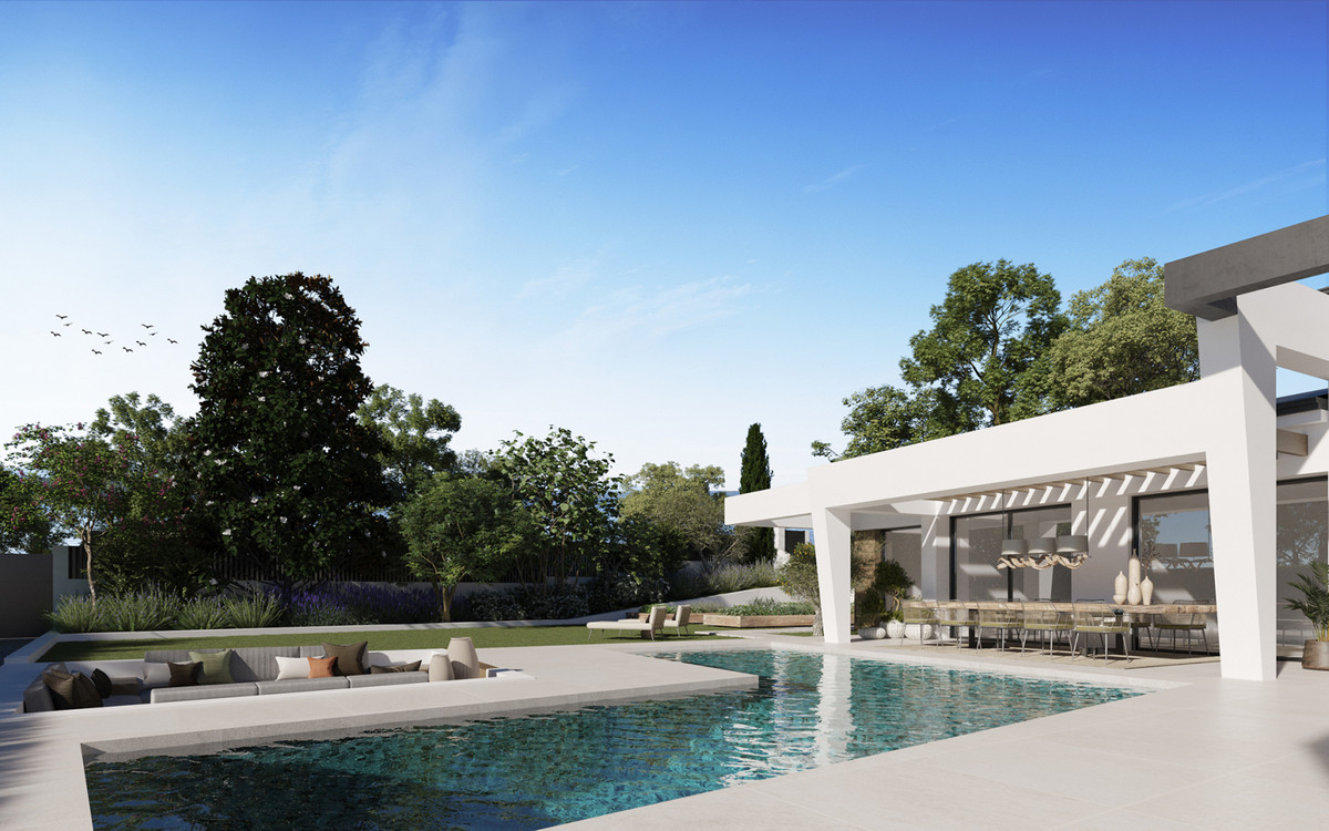 This development combines luxury and nature in an exceptional environment. Three unique villas built on one floor and designed to enjoy the Mediterranean lifestyle in a relaxed way, imagine melting into the sun’s rays, relaxing in the chill- out area by the pool, picking fresh vegetables from your own garden or letting you rock in a sunbed at sunset on a lazy summer afternoon.