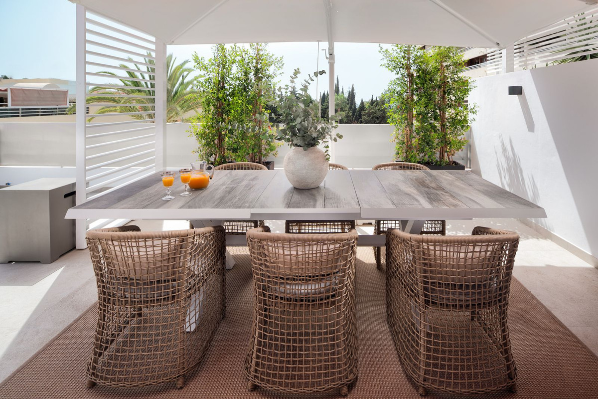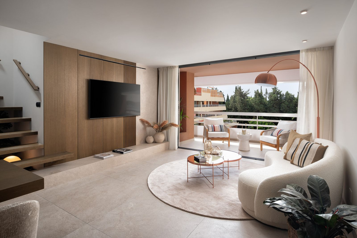 A unique duplex penthouse situated in the lively centre of Marbella and is only a pleasant three-minute stroll from the beach. This fully furnished property, which spans 300 square meters and features three bedrooms and three perfectly finely finished bathrooms, is a craftwork of detail and finest quality of materials.