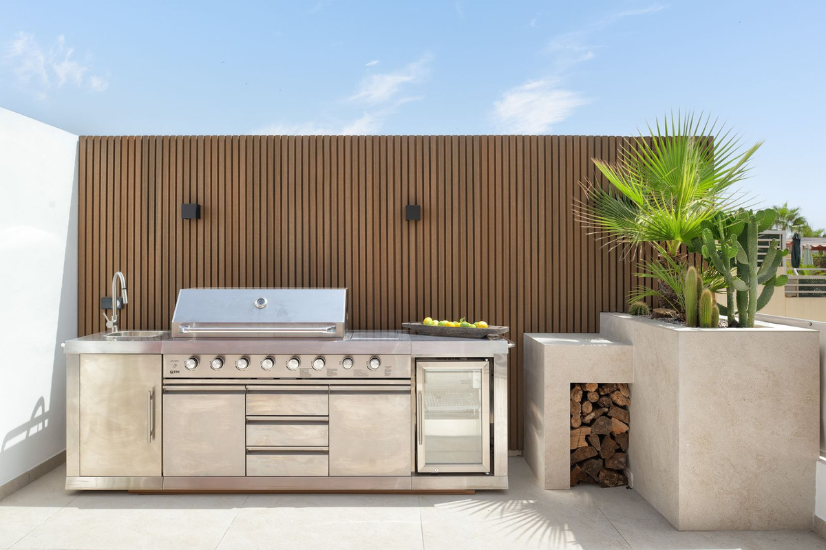 The penthouse’s crowning feature is its private rooftop terrace, where a sparkling pool awaits, complete with a cozy fireplace and a state-of-the-art barbecue area. Whether you’re hosting an intimate gathering or enjoying a quiet evening under the stars, this space is your personal paradise.