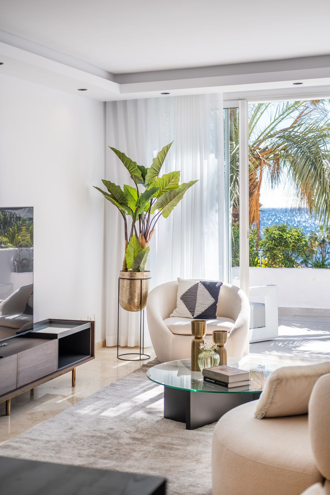 Ventura del Mar is one of the most prestigious and best located beachfront developments in Marbella… at a stone’s throw from Puerto Banús, yet very tranquil. The luxury resort offers security and privacy, well maintained and landscaped tropical gardens with streams and ponds, a large outdoor pool, a games and relaxing area with gym, as well as direct access to the promenade and the beach. Spacious, luxury apartments in a top-notch complex by the sea… a stroll from Puerto Banús and with everything you need at your fingertips!
