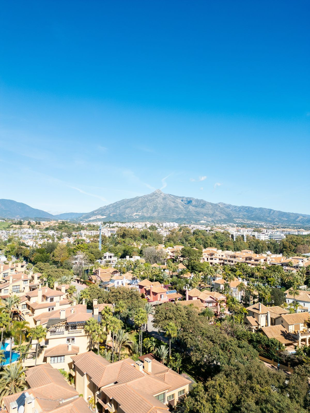 Two main floor bedrooms with king size bedrooms, one with on suite bathroom and direct access to the south terrace with panoramic views. Upstairs master bedroom with walk in dressing room and on suite large bathroom. The master bedroom has direct access to two spacious top terraces. One of the south top terraces has barbecue area and sunbathing area with a luxury jacuzzi. The views from here are stunning and overlooking the tropical gardens with water features and the sea. The other terrace faces the famous Mountain, La Concha. The property boast marble flooring and bathroom tiles, with floor heating. It also benefits from Air conditioning (hot and cold) throughout. There is fiber optic, broadband internet and WIFI throughout the apartment with Led smart tvs 75¨.