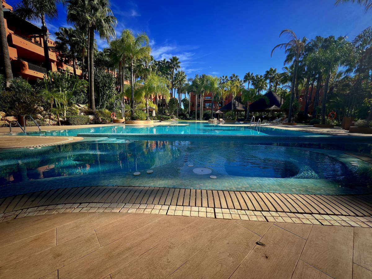 "A three bedroom duplex penthouse in La Alzambra Hill Club, a 24hr gated and secure development, set on lush tropical gardens with waterfalls, communal swimming pool and a gymnasium. The east facing property offers spacious accommodation distributed over two floors comprising of, on the entrance floor, there is a large combined lounge and dining room with a fireplace and direct access to the corner terrace. The fully equipped kitchen is top of the range and finished to the highest quality with large wooden windows that give a wonderful view of the mountains, with breakfast area and a laundry room. The master bedroom en suite with a hydro-massage bath and a dressing room also have direct access to the terrace and a guest cloakroom. On the upper floor, there are two bedrooms en suite, one of them with a dressing room, the two bedrooms have access to the large solarium terrace on the corner.