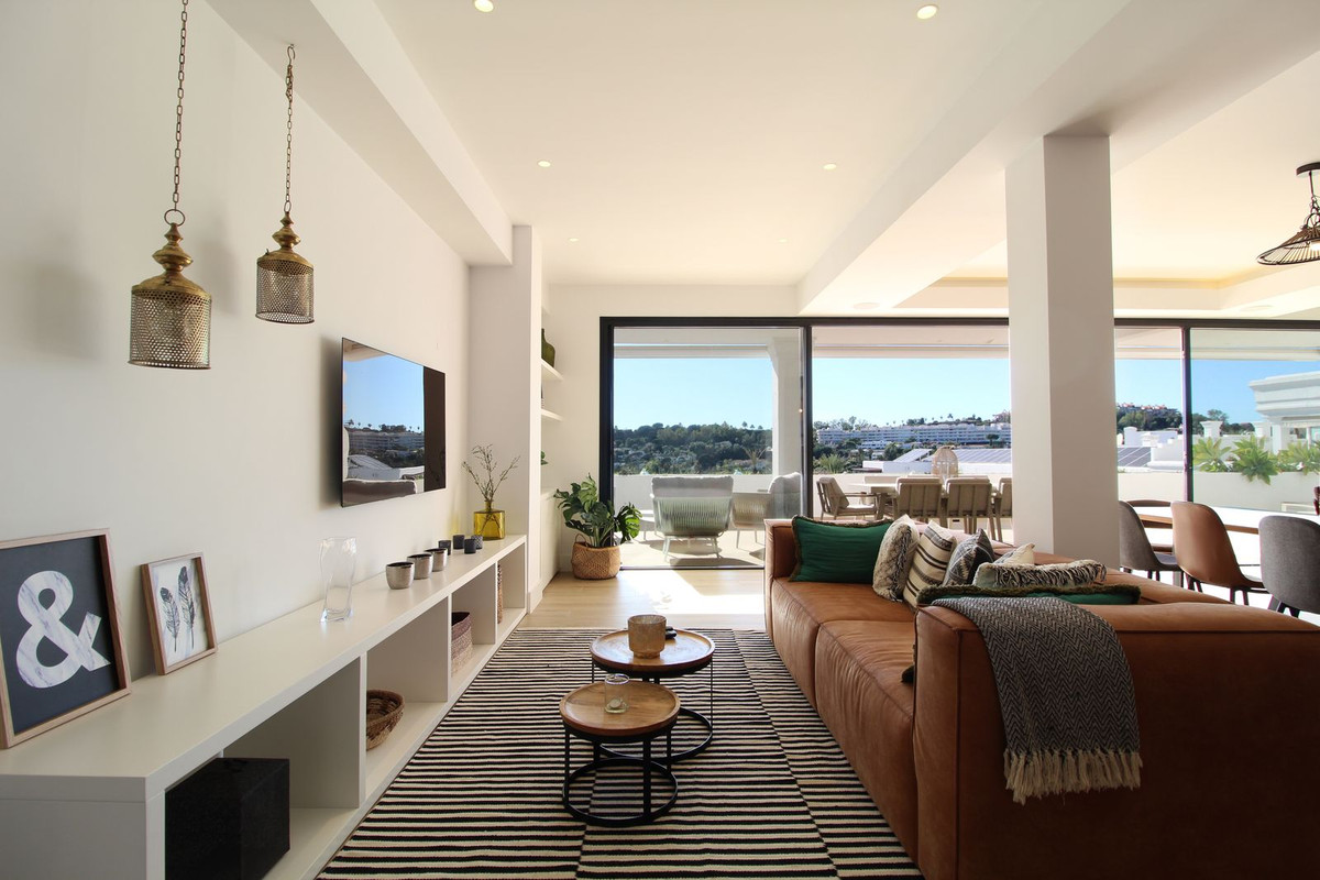 This stunning, recently refurbished south/west-facing penthouse apartment is located frontline to the renowned Royal Las Brisas Golf Course, within a gated community offering 24-hour security, concierge, and reception services. Spread across one level, the property boasts breathtaking views of the golf course, the Mediterranean Sea, and the iconic La Concha mountain. No expense has been spared in the high-end refurbishment of the penthouse, which features four spacious bedrooms, each with its own luxurious en-suite bathroom. Hardwood flooring flows throughout, and floor-to-ceiling glass doors and windows in most areas allow an abundance of natural light to fill the space. The complex is situated directly next to the Las Brisas Golf Clubhouse, where residents can enjoy access to its restaurant overlooking the course. Additional amenities, including Aloha College and other famous golf courses in the Golf Valley, are just a short drive away. The property also includes a heated swimming pool, private underground parking and a storage room.