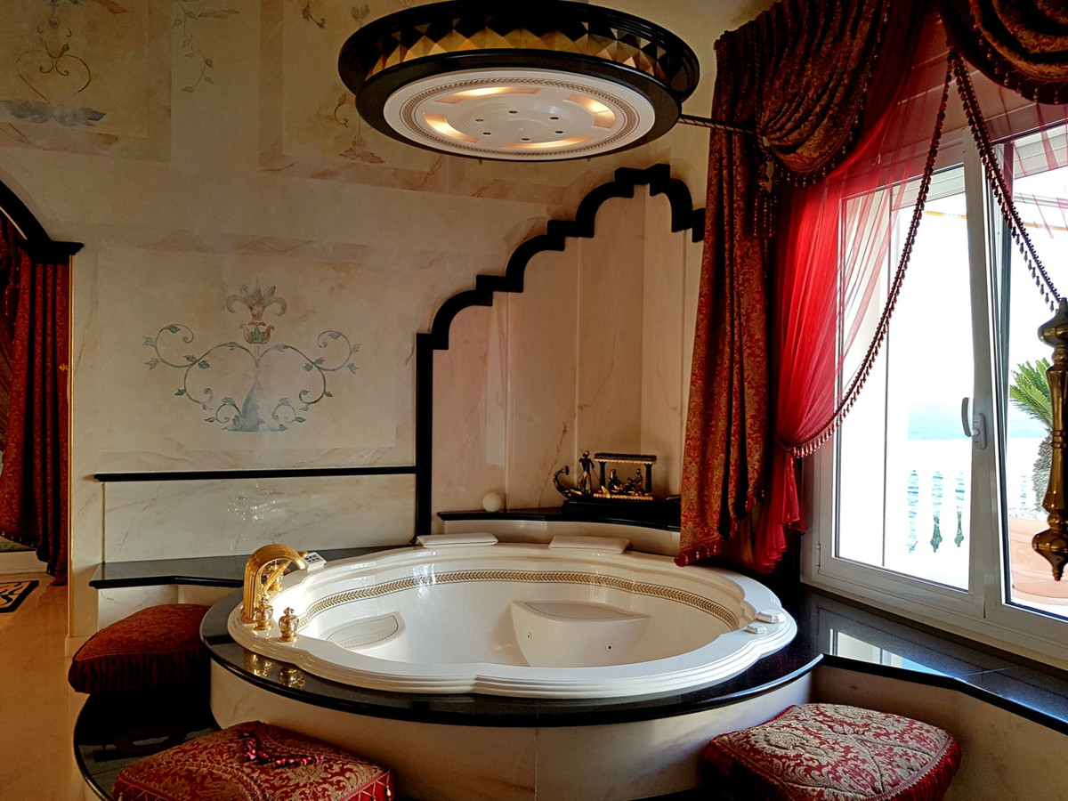 Setting : Beachfront, Beachside, Close To Shops, Close To Sea, Urbanisation, Front Line Beach Complex. Orientation : South. Condition : Excellent, Recently Renovated. Pool : Communal. Climate Control : Air Conditioning, Pre Installed A/C, Fireplace, U/F Heating. Views : Sea, Beach, Panoramic, Garden, Pool, Courtyard. Features : Covered Terrace, Lift, Fitted Wardrobes, Private Terrace, Sauna, Storage Room, Utility Room, Ensuite Bathroom, Marble Flooring, Jacuzzi, Double Glazing, 24 Hour Reception. Furniture : Fully Furnished. Kitchen : Fully Fitted. Garden : Communal. Security : Gated Complex, Entry Phone, Alarm System, Safe. Parking : Underground, Street, More Than One. Utilities : Electricity, Drinkable Water. Category : Bargain, Holiday Homes, Luxury.