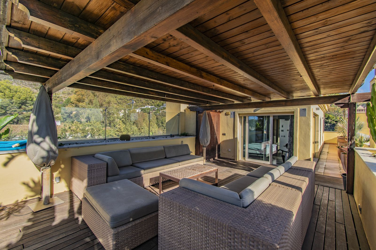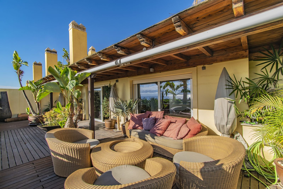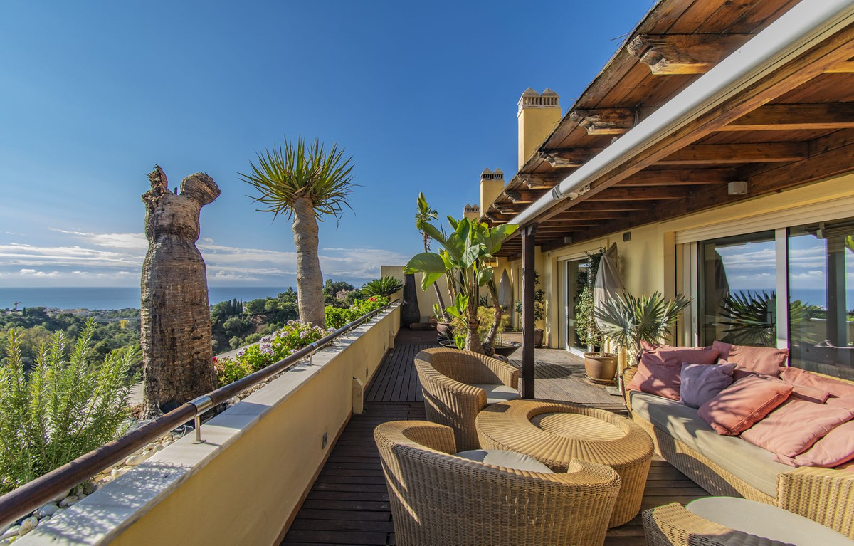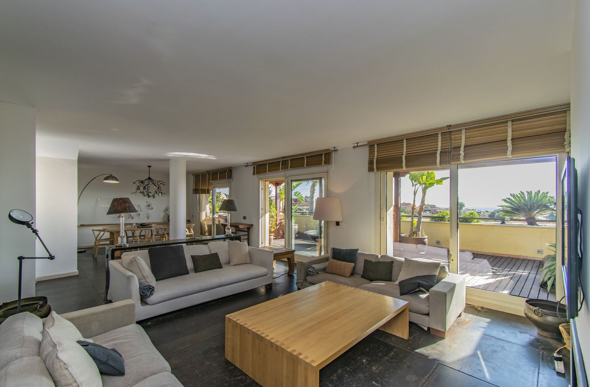 PENTHOUSE WITH SEA VIEWS AND PRIVATE POOL IN THE MOST EXCLUSIVE AREA OF MARBELLA Spectacular penthouse, located in the exclusive area of Sierra Blanca, just a few minutes from the Golden Mile of Marbella, Puerto Banus and the center of Marbella. Penthouse - duplex consisting of a total of three bedrooms, two bathrooms plus toilet, large living room with fireplace, kitchen with dining area and large covered and open terraces with private pool and beautiful views of the sea. Includes two parking spaces and a storage room. Established within an exclusive urbanization with 24 hour security, with two swimming pools and gardens. An ideal property for clients who want to enjoy a unique property in the most exclusive and luxurious area of Marbella.