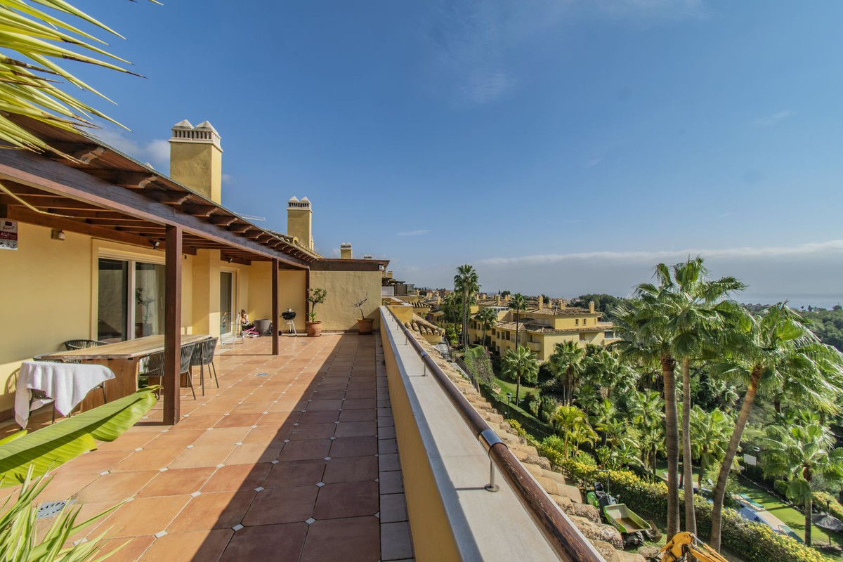 PENTHOUSE WITH SEA VIEWS IN THE MOST EXCLUSIVE AREA OF MARBELLA Spectacular penthouse, located in the exclusive area of Sierra Blanca, just a few minutes from Marbella's Golden Mile, Puerto Banus and the centre of Marbella. Penthouse, on one floor, consisting of a total of three bedrooms, two bathrooms plus a toilet, large living room with fireplace, kitchen with dining area and large terraces. Includes a garage space and a storage room. Established within an exclusive urbanisation with 24-hour security, with two swimming pools and gardens. An ideal property for clients who want to enjoy a unique property in the most exclusive and luxurious area of Marbella.