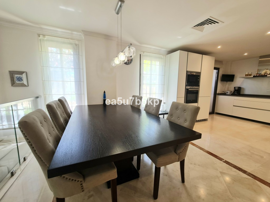 Beautiful South-Facing, five bedroom Townhouse in the exclusive gated development of Señorio de Marbella. Discover an exceptional opportunity to own a stunning south-facing townhouse in the prestigious Señorio de Marbella, one of the finest gated communities on Marbella’s exclusive Golden Mile. This 24-hour secure community exudes the charm of an Andalusian pueblo, featuring picturesque squares with fountains, extensive lush gardens, and mature tropical landscaping.