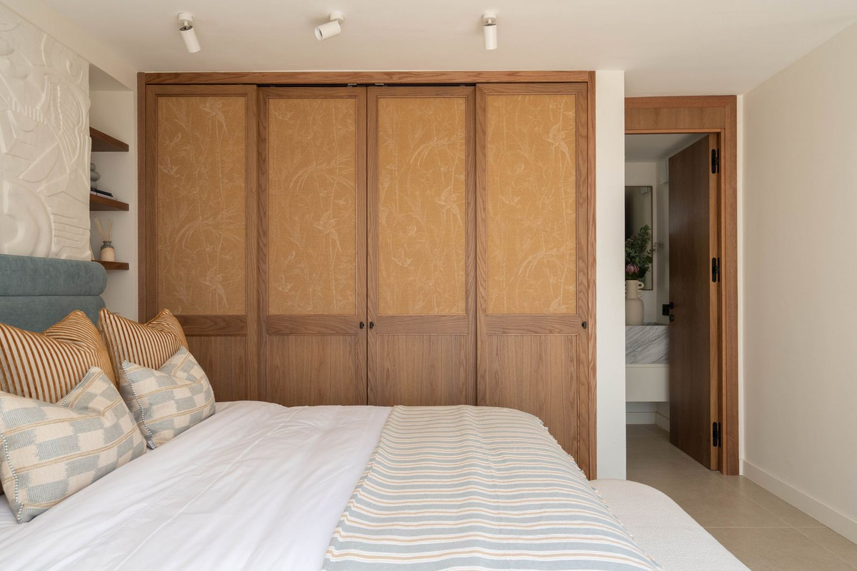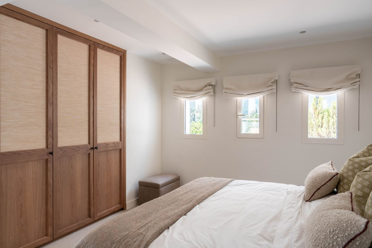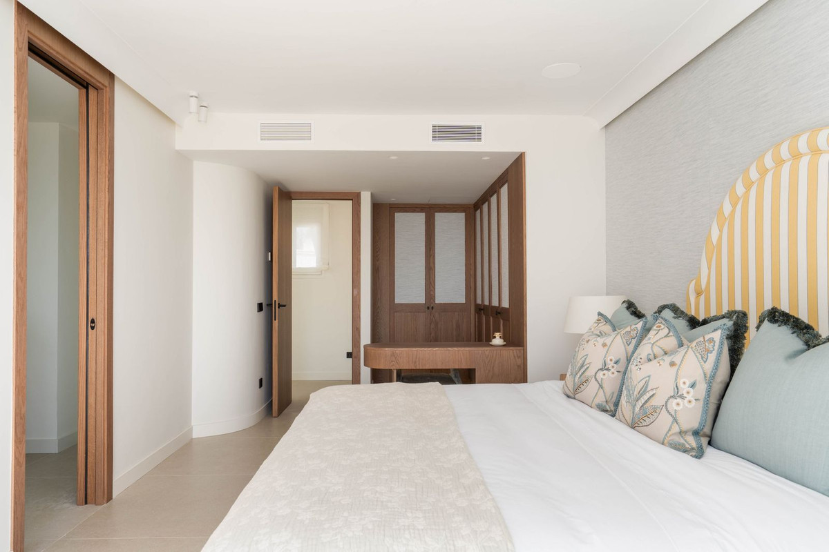 Upstairs you’ll find two more bedroom suites, both with panoramic sea views. The principal suite offers a Mediterranean ambiance with en suite bathroom and a chic walk-in closet, while the second suite opens onto a spacious terrace with lounge and wet bar – the perfect setting to enjoy Marbella’s sunsets. With direct access from the community to the beachfront promenade, you can stroll to PuenteRomano, Marbella Club, or even Puerto Banús. Fine dining, beach clubs, and world-classamenities are all within walking distance.