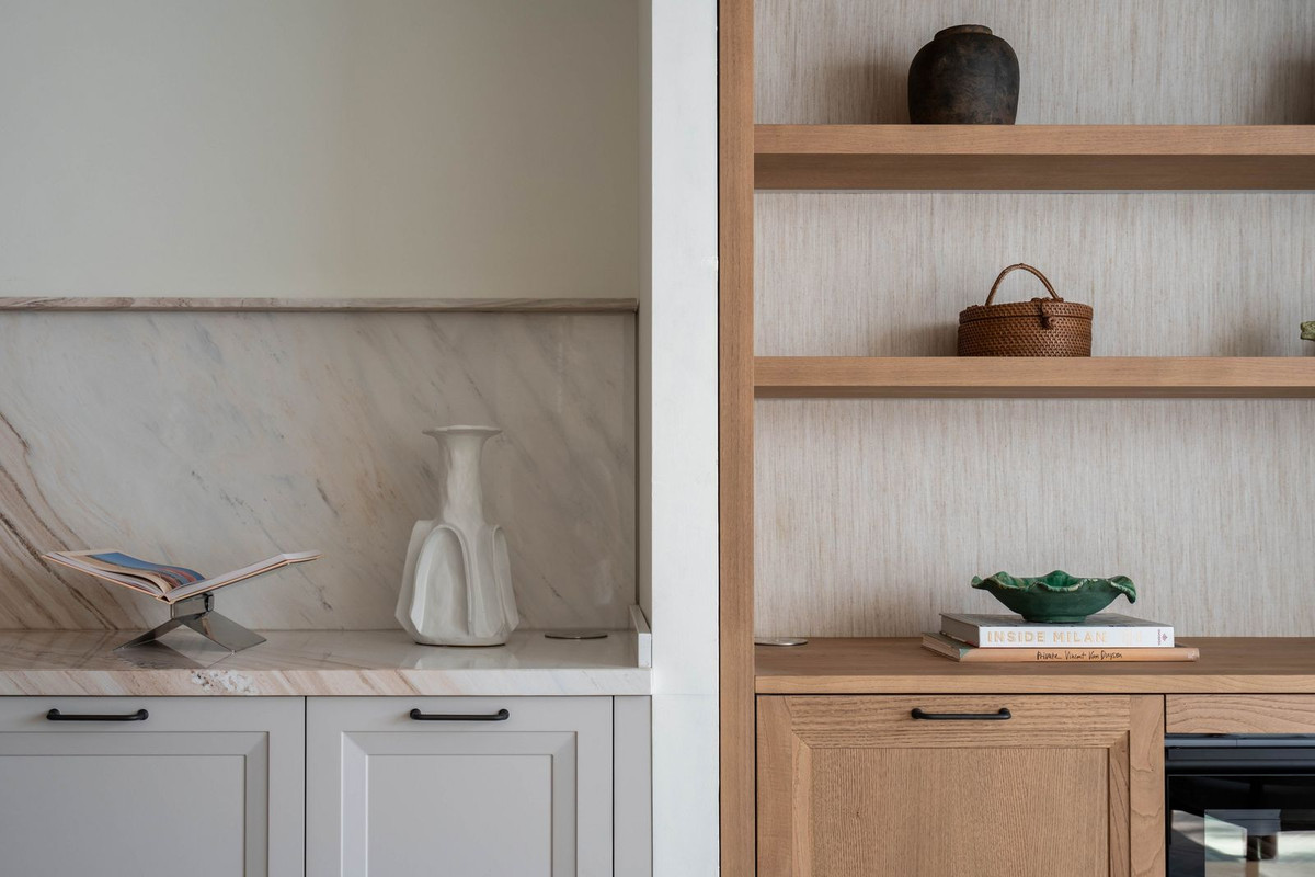 The entrance level welcomes you with natural light and an open layout uniting the living room, dining area, and social kitchen. Large sliding doors open to a private garden designed for outdoor living, featuring a heated pool, summer kitchen, and lounge and dining areas – your own secluded retreat by the sea. A guest suite with en suite bathroom anda guest toilet complete this level.