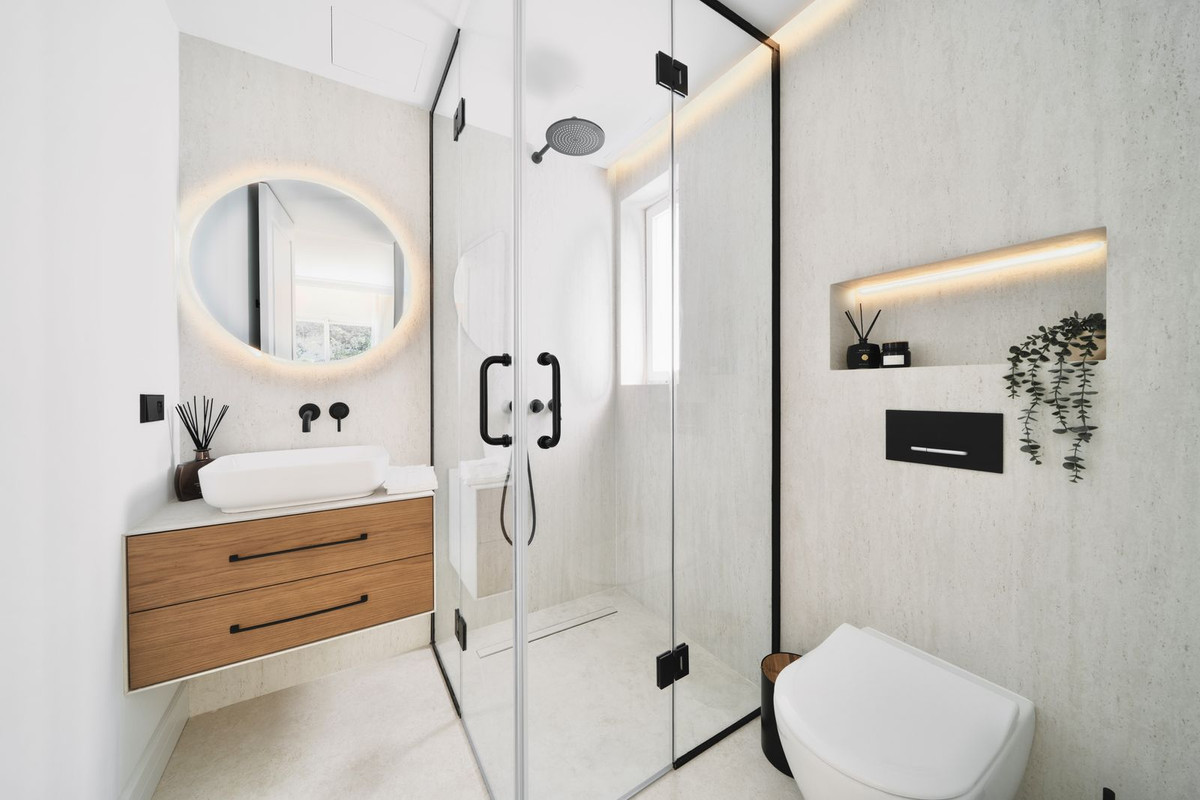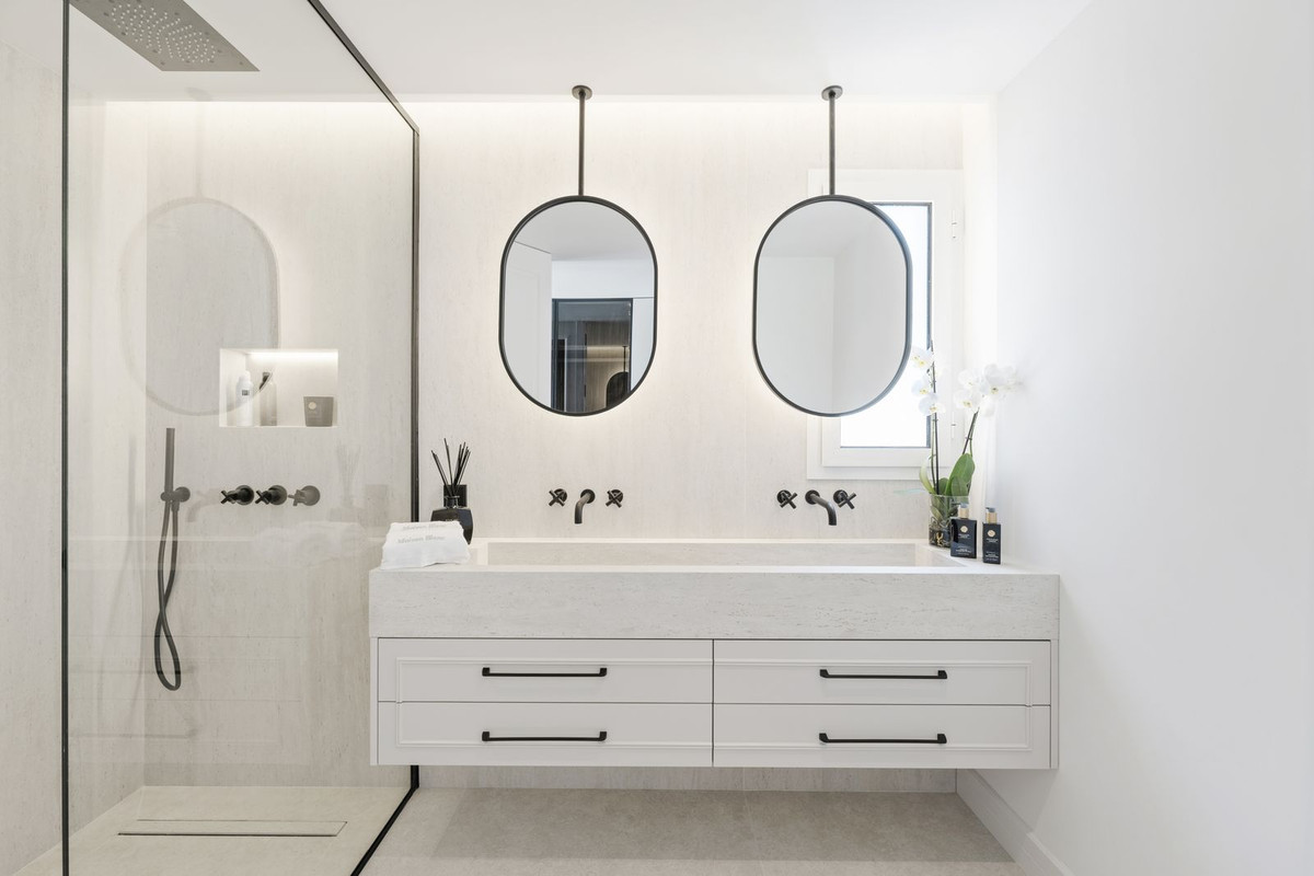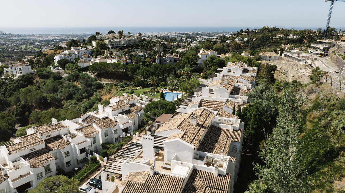 This stunning top floor apartment., set within the prestigious La Quinta Golf resort, offers an elegant & sophisticated interior with breathtaking panoramic views. Having been renovated recently with high quality materials throughout including gorgeous wall panneling and herringbone hardwood floors, an improved lay-out and a bespoke interrior design this is a property that will wow even the most discerning buyer.. The apartment features an open plan kitchen with Smeg appliances and a living room with large sliding doors to the terrace boasting panoramic views to the surrounding landscape, La Quinta Golf and the Mediterranean beyond. The terrace is partially covered with a lounge and dining area as well as an outdoor kitchen making for a perfect space to relax and dine al fresco. There are two guest bedrooms, each with their own en-suite bathroom, as well as a guest WC hidden behind a panelled wall. The masterbedroom is sumptuous and elegant with an en-suite bathroom, beautifully detailed wardrobes and closets as well as access to the terrace. Finally, there is also a very handy and spacious storage room on the ground floor of the building belonging to this apartment, perfect for storing larger items like bicycles or golf equipment.