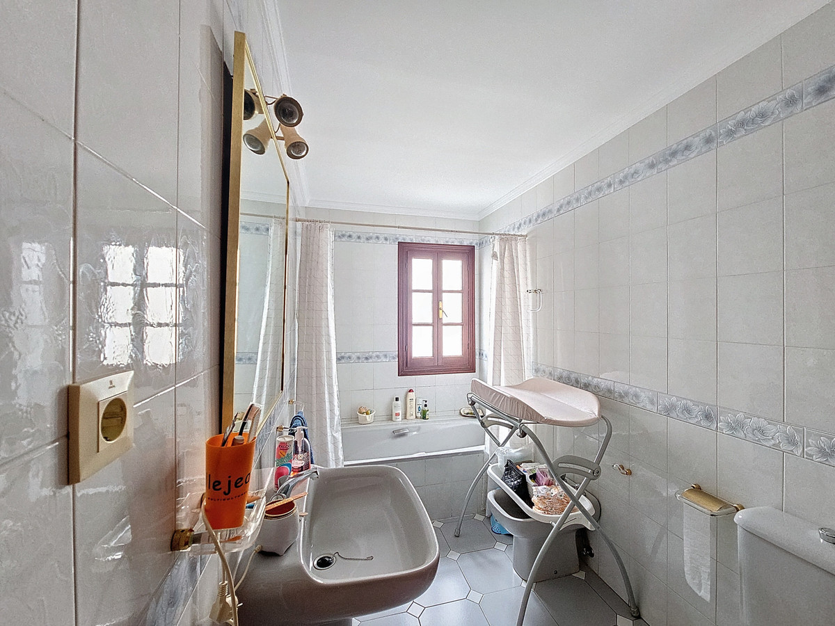 Excellent Opportunity to acquire a whole building right in the center of Estepona, just 50m from the beach and surrounded by Old Town streets. The building is built over 3 levels: bottom basement with own entrance is a business premise: upon opening the large garage door, there is a ramp with room to park 2 cars, and the premise, which can be used (and was used) as a bar, is 225m2 total, including kitchen and very spacious multi purpose room, along with 2 bathrooms. There are no exterior windows in this basement.