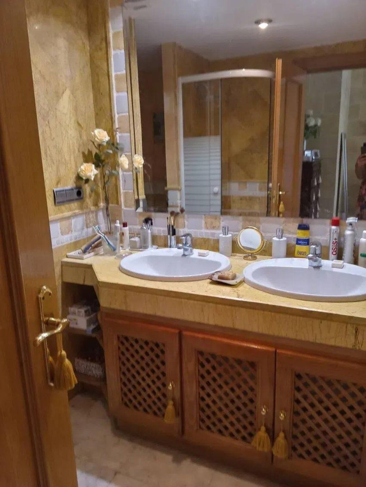 Spacious townhouse in the Golden Mile next to the Hotel Puente Romano and the Hotel Alanda Marbella, and walking distance to the beach. The house is distributed over four levels: the main floor consists of an entrance hall, a guest toilet, a fully equipped kitchen with an office, a splendid living room with a fireplace and a large double glazed enclosure that leads to a summer dining porch with access to the garden and the private pool. A staircase takes you to the first floor where you will find the large master bedroom with a dressing area, an en-suite bathroom with a jacuzzi and a shower tray and a large private terrace, a second guest bedroom with an en-suite bathroom, a large built-in wardrobe and a private terrace. On the upper floor there is a beautiful attic bedroom, also with an en-suite bathroom, a built-in wardrobe and access to a large solarium with afternoon sun and views of the mountains surrounding Marbella such as La Concha. The semi-basement is completely open plan and has an adjoining storage room and access to the underground garage with two large parking spaces. Likewise, and through a large glass window, it has access to a chill-out porch with a staircase that gives access to the garden and pool. Finally, the large garden has some fruit trees and tropical plants that give it a very peculiar character and the possibility of enjoying the sun and its magnificent private pool. Features: 450 useful M2 East/West orientation 3 bedrooms with en suite bathroom and 1 guest toilet. DAIKIN hot-cold ducted air conditioning system, with independent on/off in bedrooms and living room. 2 terraces and 1 solarium. Large covered porch. 4 parking spaces, 2 underground and 2 outdoor. Fireplace. Electric blinds. Second hand/perfect condition. Security.