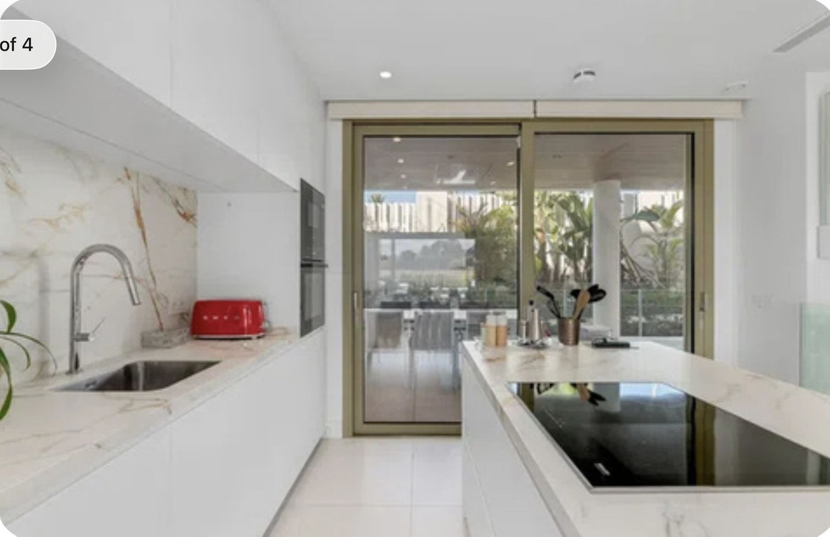 As the largest home within the Benalus complex, the residence is distributed across three floors and has been fully furnished and tastefully decorated. It features a spacious open-plan living and dining area with direct access to a generous terrace, complete with a private plunge pool and outdoor chill-out zone. The modern, fully fitted kitchen complements the home’s contemporary style.